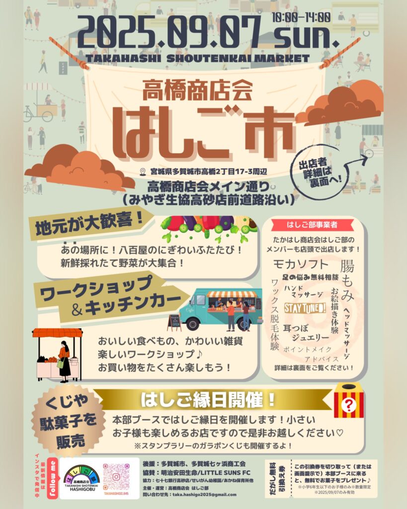 多賀城市高橋地区の有志で開催される第2回はしご市です!