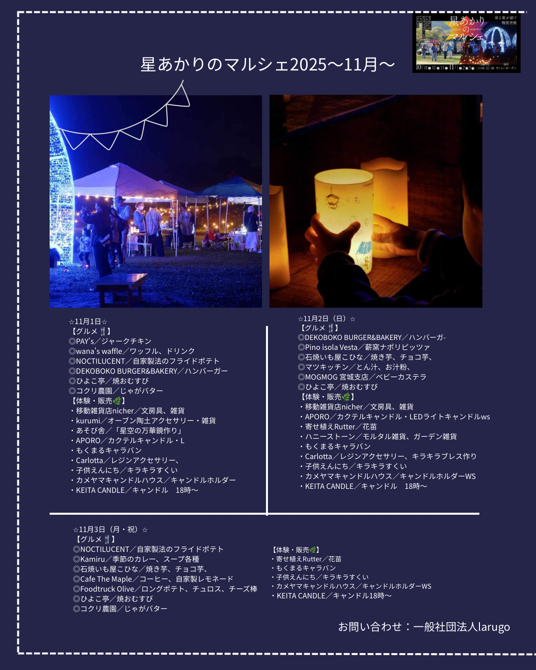 ✨\星あかりのマルシェ11月もお楽しみいっぱい!/✨