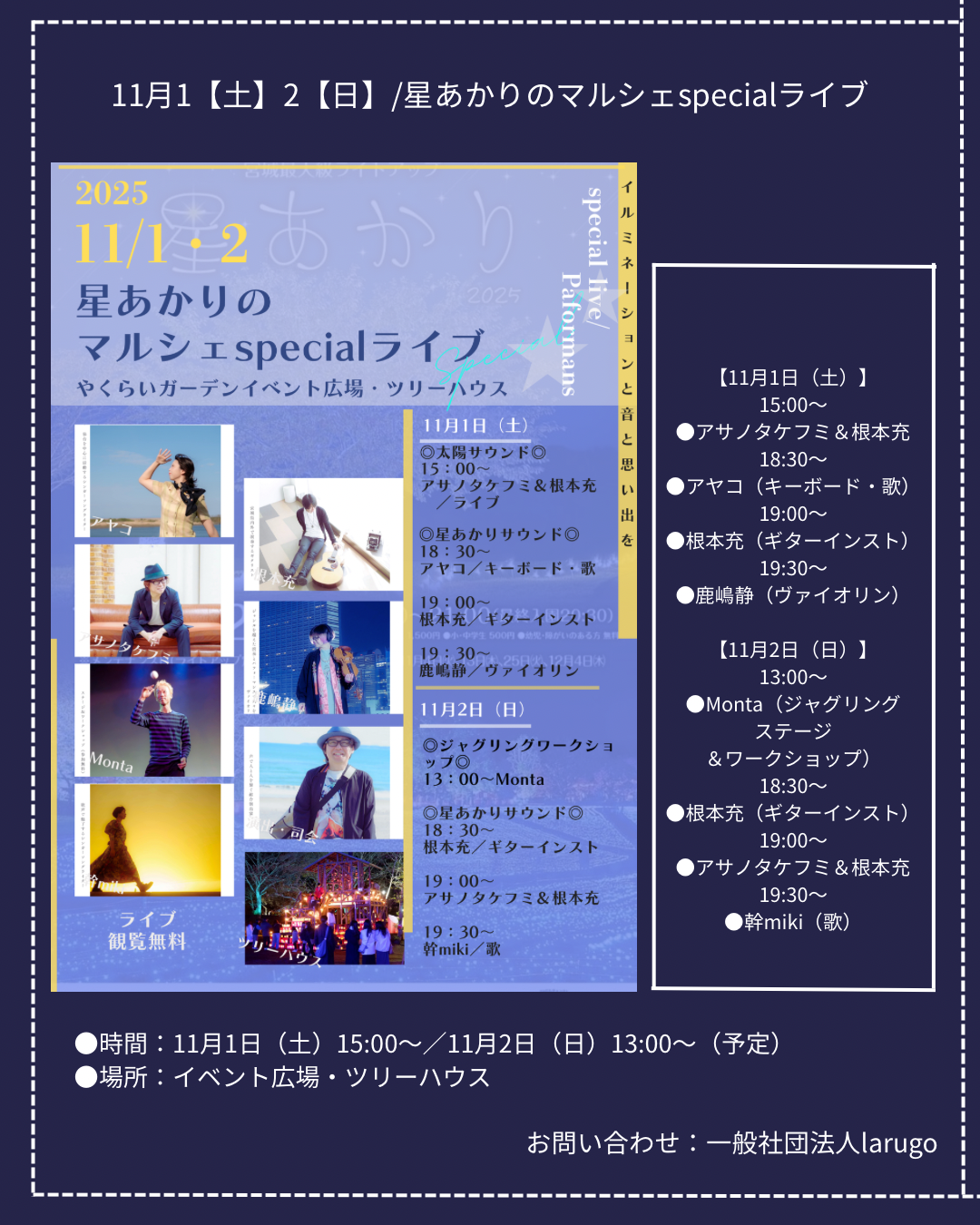 🎵11月1日、2日は星あかりのマルシェ限定ライブ開催! @a_take23