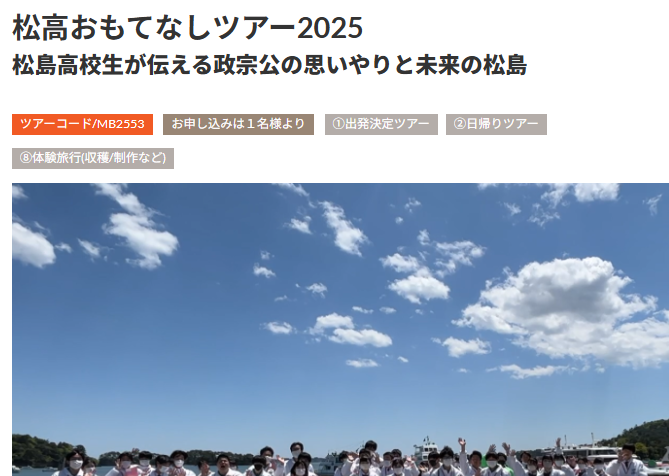 松島高校の生徒さんが作成したプラン「おもてなしツアー」の参加者募集中とのことです!